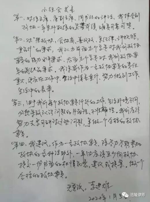 ● 杨帮国代表说,作为一名律师区人大代表,能为涪陵的发展、建设美丽涪陵幸福涪陵建言献策,我感到无比的振奋和鼓舞,回去以后要在代表的选民中和所在单位宣传好本次会议精神。在今后工作中,不忘初心,牢记“倾民意、助民困、履职责”使命。做一名不负重托传递心声的好代表。● 杜本忠委员说:区两会描绘的住房梦、创业梦、脱贫梦、小康梦……每一个梦都连着老百姓。现在,发展蓝图已经绘就,冲锋号已经吹响,律师作为“法律职业共同体”的一员,要积极参与我区法治政府、法治社会建设,撸起袖子加油干,才能不辜负全区人民的信任和期待。● 李进雄委员说,政协委员是一种荣誉,更是一份责任、一份担当,今后自己无论有多忙,都要不断提高自身理论素养和业务水平,提高政治把握能力、调查研究能力、联系群众能力、合作共事能力,履行好自己所担负的职责。● 李福委员说,自己要发挥专业优势,认真履职,积极传民情、达民意、建诤言、献良策,向社会传递涪陵律师在参政议政上的正能量、好声音。