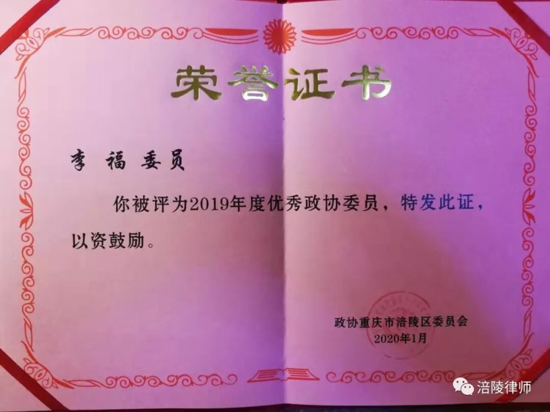 ∆ 杜本忠、李福被评为2019年优秀政协委员证书
